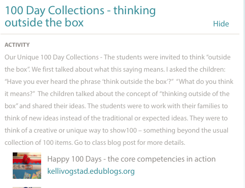 I try to give parents the rationale and important big ideas behind our curriculum activities. I also invite them to access other information, for example, blog posts, to help them further support and celebrate their child’s learning.